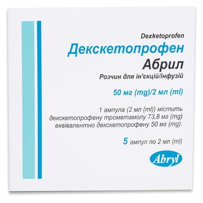 Інструкція для Декскетопрофен Абріл розчин д/ін. та інф. 50 мг / 2 мл по 2 мл №5 (ампули)