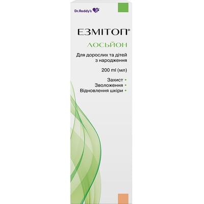 Езмітоп лосьйон косметичний засіб для щоденного догляду за чутливою, сухою, подразненою шкірою допомагає усунути свербіж та подразнення, помірно розгладжує зморшки та повертає шкірі пружність. Використання лосьйону забезпечує тривале зволоження, сприяє відновленню епітелію та захисної функції шкіри.