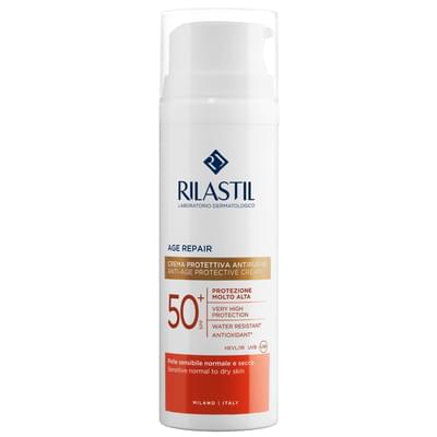 Крем для обличчя RILASTIL (Ріластіл) сонцезахисний, антивіковий SPF50 спеціально розроблений з комплексом Agerepair, який запобігає та протистоїть фотостарінню шкіри. Розроблено для зменшення ризику подразнення очей.