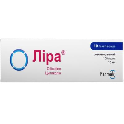 Основною діючою речовиною у Ліра розчин орал. 100 мг/мл по 10 мл №10 (саше) є Цитиколін.