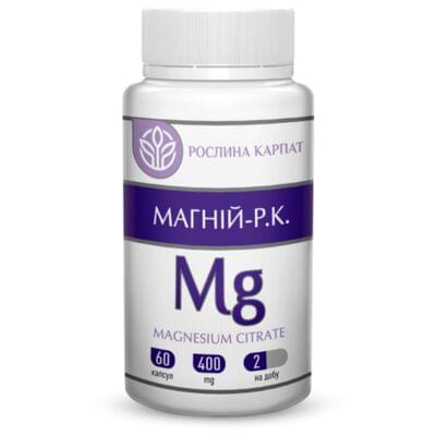 Основною діючою речовиною у Магній-Р.К. капсули №60 (банка) є Магнію цитрат.