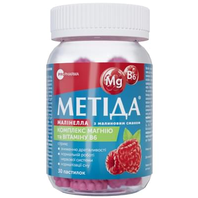 Ціна на Метіда Малінелла з малиновим смаком пастилки жув. №30 (флакон) стартує від 344.00 ₴ за упаковку.