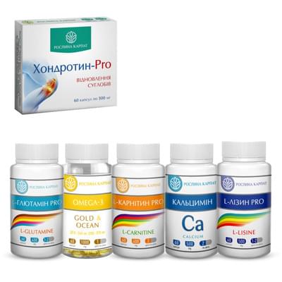 - Хондротин Pro - біологічно активна добавка, що містить хондроїтин сульфат натрію, глюкозамін сульфат та метилсульфонілметан (МСМ). Ці компоненти мають хондропротекторну дію, тобто сприяють зміцненню та відновленню суглобів, хрящів та зв’язок.