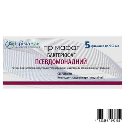 Ціна на Прімафаг бактеріофаг псевдомонодний по 20 мл №5 (флакони) стартує від 181.66 ₴ - флакон / 1 шт.