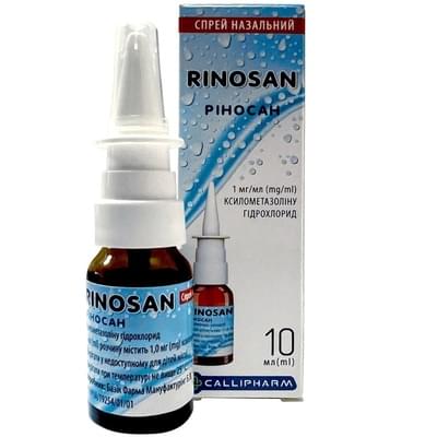 Основною діючою речовиною у Ріносан спрей назал. розчин 1 мг/мл по 10 мл (флакон) є Ксилометазолін.