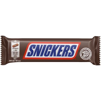Шоколадний батончик Snickers - це смачний вуглеводний батончик зі смаженим арахісом, карамеллю й нугою, покритий молочним шоколадом. Він із легкістю справляється навіть із сильним голодом.