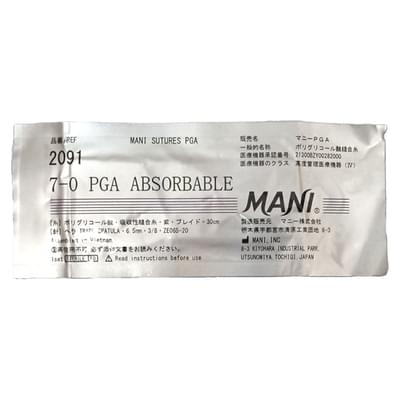 Виробником Шовний матеріал полігліколід Mani, що не розсмоктується, з покриттям ПГА плетений розмір USP 7/0, довжина 30 см з 2 шпательними голками 6,5 мм 3/8 бузковий є Mani.